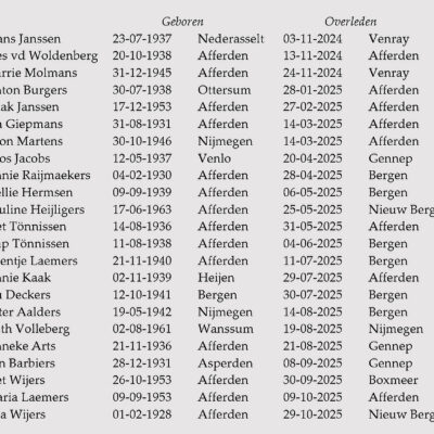 18 januari 2024 – Inloopavond Dorpsraad Afferden – van 20.00 tot 21.30 uur in de Pruuver
