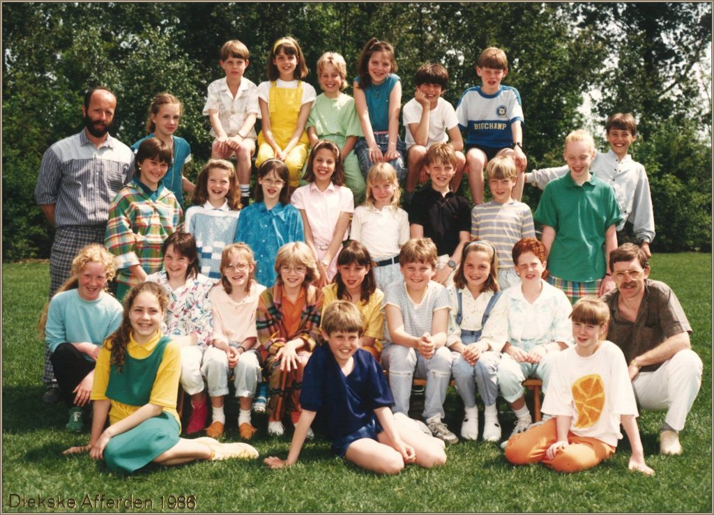De klas van meester Verbeeten en meester Giesbers in 1986.