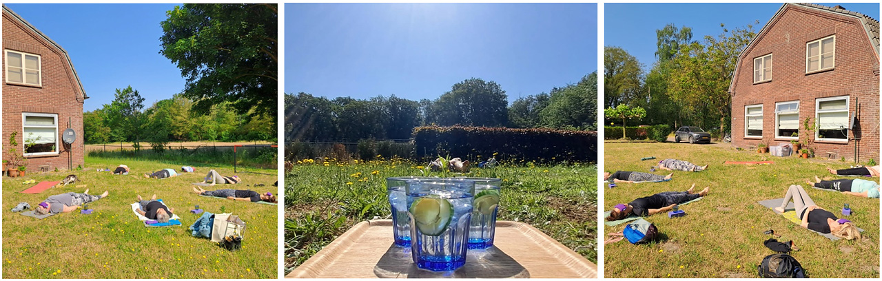 We werken naar een piek toe en bouwen dan weer langzaam af. De les wordt afgesloten met een rustige yin