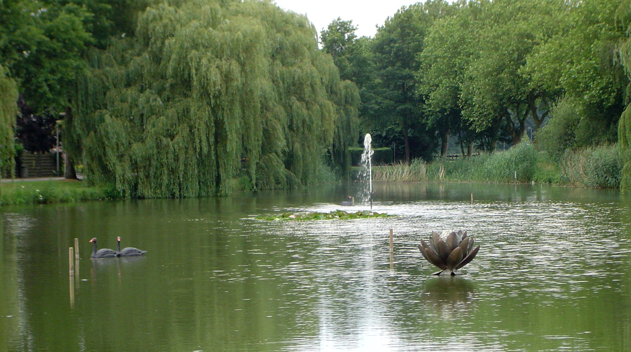 Vorige week werd ook de langverwachte fontein in de vijver aangesloten. Het effect was maar van korte duur. Vandalen hadden in korte tijd de leiding gesaboteerd. Inmiddels werkt de fontein weer.